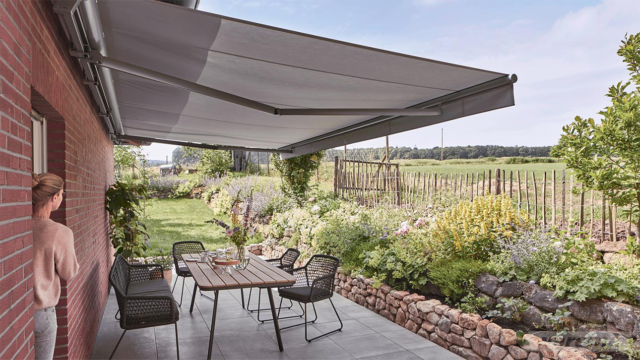 Mit der Gelenkarm-Markise Terrea von WAREMA öffnet sich Ihnen eine schier atemberaubende Auswahl an Stoffen und individuellen Gestaltungsmöglichkeiten. Wählen Sie aus umwerfenden Trend-Dessins eine Gestaltung, die Ihren Stil unterstreicht, oder verändern Sie mit dezenten Uni-Tönen durch Ihre Gelenkarm-Markise Terrea Farbe und Stärke des Schattens.